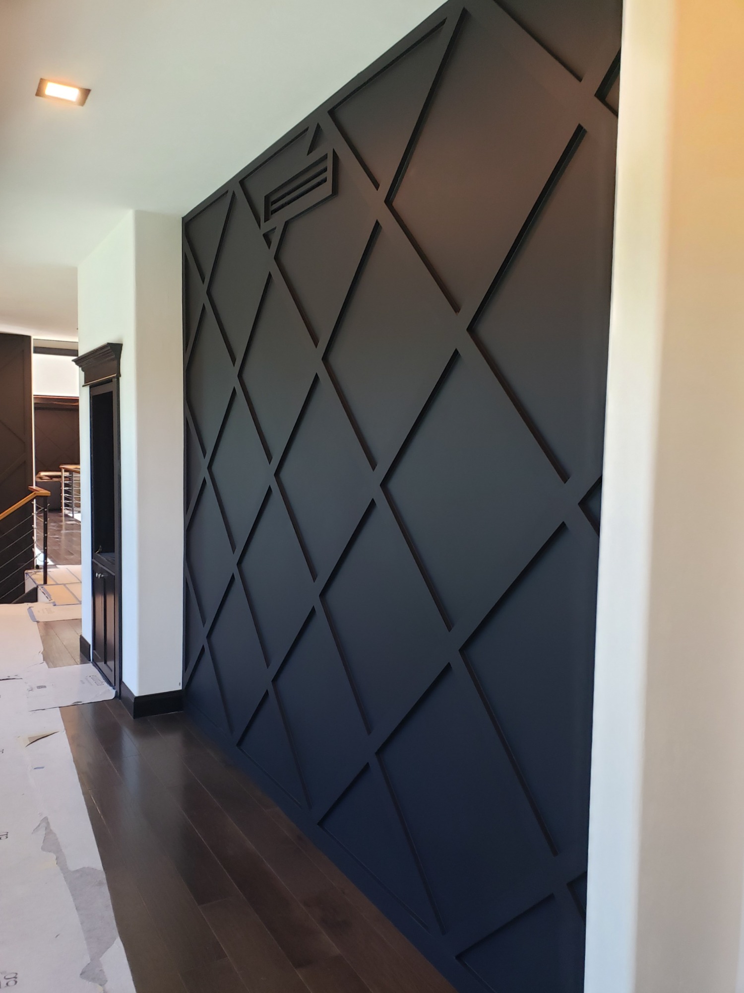 Scope: Interior feature walls, stairway panels, game room, and lounge wall installation