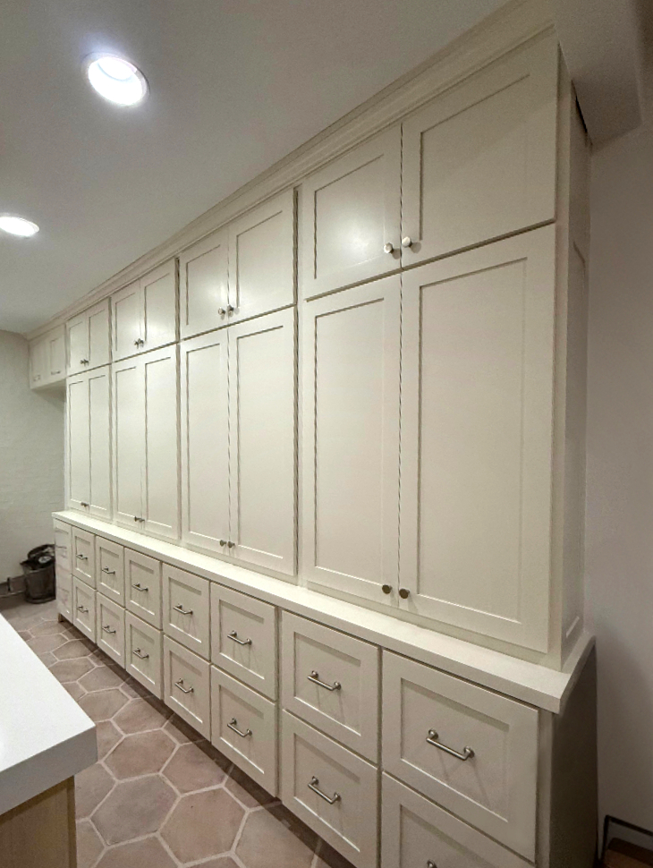 Scope: Kitchen cabinetry installation including island cabinetry and built-in storage wall