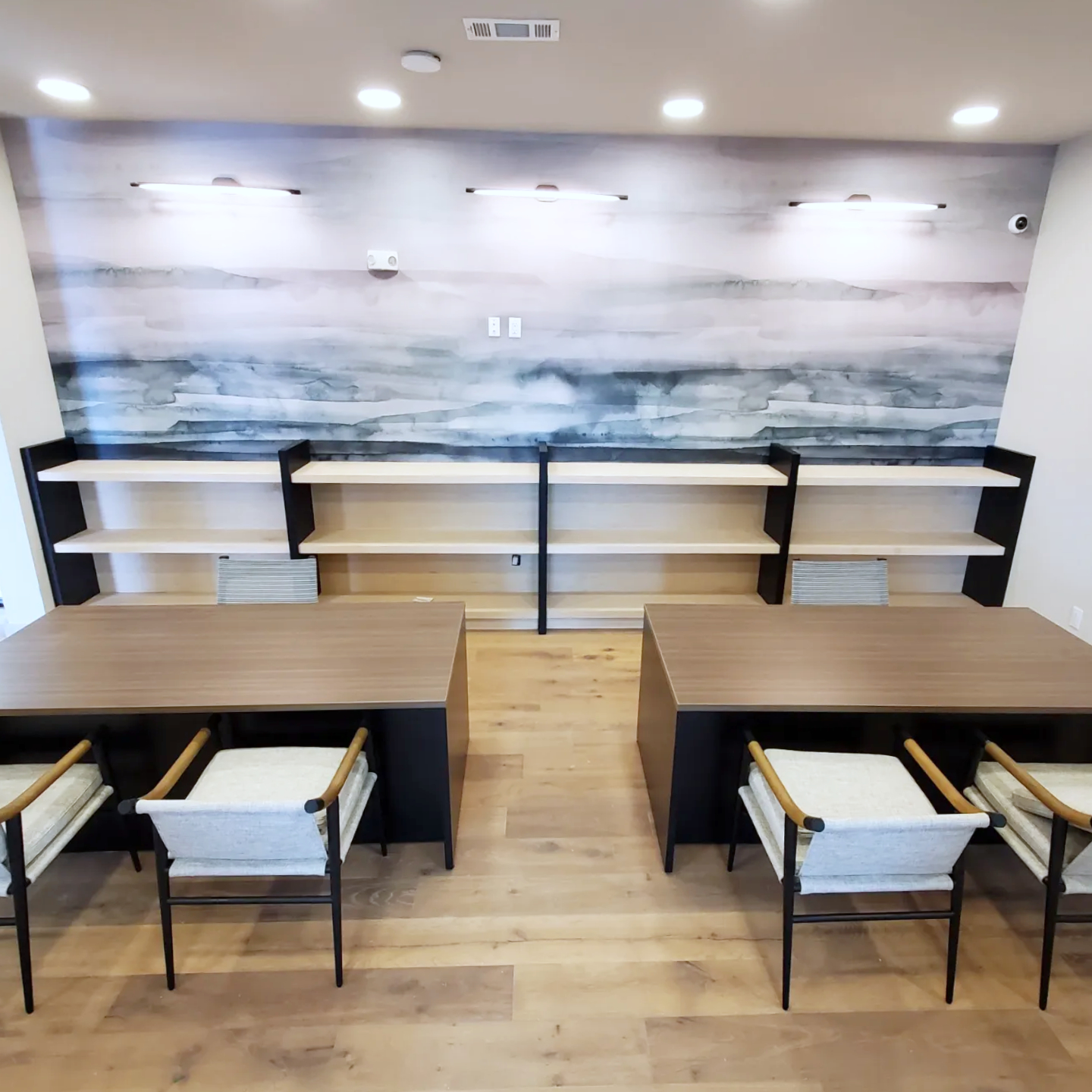 Commerical Breakroom Cabinetry and Wall Shelving